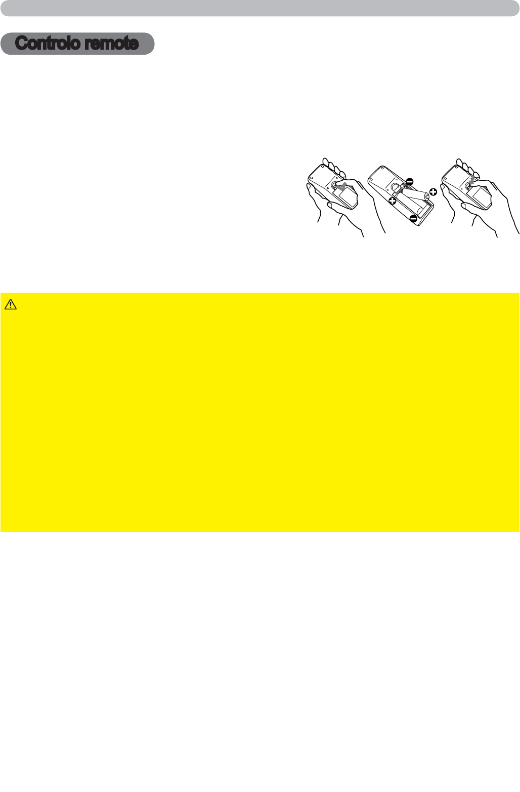 Instale as baterias no controlo remote antes de usá-lo. Se o controlo remote