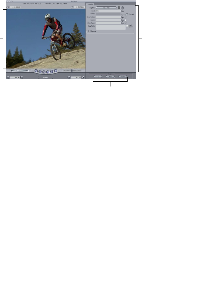 • Logging tab: You enter all the descriptive information about the clip you are about to