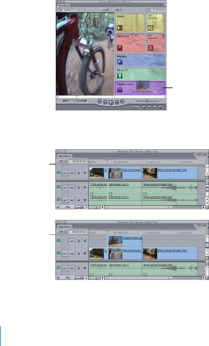 3 Drag the clip from the Viewer to the Superimpose section of the Edit Overlay in the