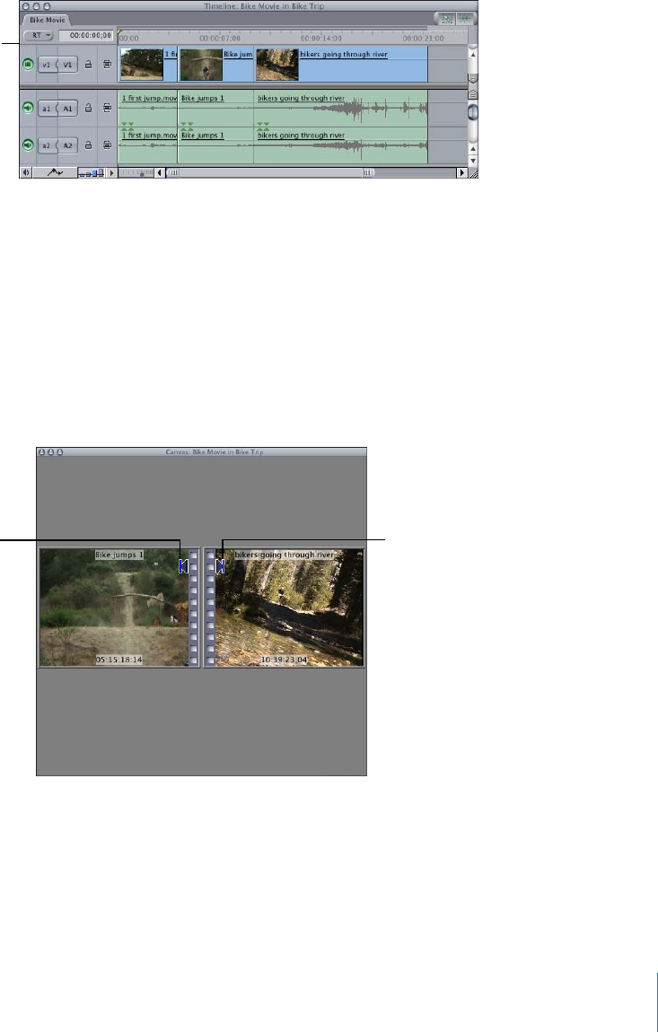 outgoing clip on the left and the In point of the incoming clip on the right.