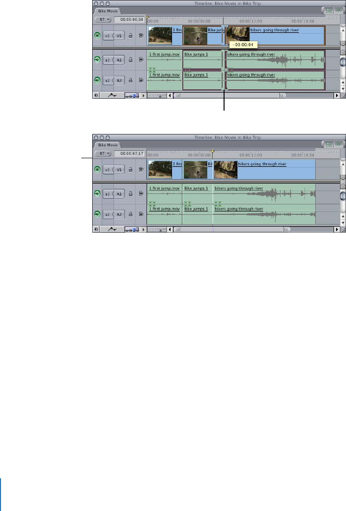 For more information about roll edits, see Final Cut Express Help, Chapter 19, “Advanced